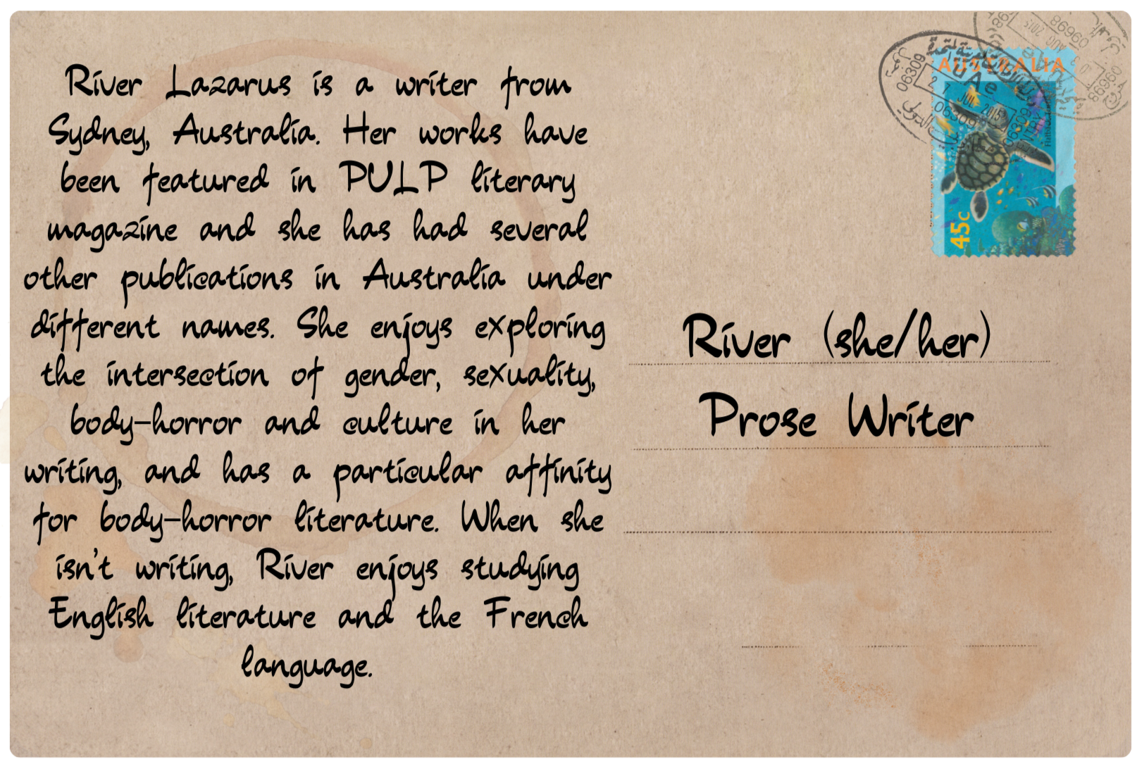 ✨ Submissions will be read on a rolling basis for each issue.✨ Submitters of this lit mag need to be 18 or older because of the inclusion of NSFW works.✨ if you don't know if your piece fits, like a soundscape or weird piece of art or whatever other fun thing, It does. We will find a way to make it work, if it's cool enough and we want it in the magazine. We'll find a way.✨ We encourage previous submissions and simultaneous submissions. On the submissions page, there is a part for you to fill out where it's been published before so we can call out the amazing lit mags who published it. If it gets submitted somewhere else, shoot us an email and we will congratulate you and update your form.✨ If your piece needs to be pulled for any reason, just reach out and we will do it no questions asked.✨ No AI writing or art of any kind will be allowed. We don't need robots doing our jobs. Now, if you write an awesome science fiction about it, we will probably publish it, but if you get a robot to write it, then that's just mean.✨ No submissions from Zionists will be considered in this magazine. The Editor in Chief and Staff stand with the people and state of Palestine.✨ There are no formatting requirements on any of this. Do you, babes.✨ PULP does not want work that is racist, sexist, homophobic, transphobic, or xenophobic. We will publish work that makes a comment on these topics if it displays these in a negative light and brings forth the flaws in the thinking, but any kind of hateful speech outright is not allowed. When a piece displays that commentary, a trigger warning will be present at the beginning.✨ There is no technical word limit, but we do ask you keep it to one piece for any long fiction, creative nonfiction, or article pieces. If you write War and Peace 2, electric Boogaloo, we will probably reject it, but write your little hearts out, we can't wait to read it.✨ There is also a three piece max for short stories and a five piece max for poems, artworks, photos, and hybrid works. We are are a little team right now. (I.e. It's only me and I want to be able to read all of your amazing works.)✨ We cannot afford to pay contributors at this time. We can definitely pay you in experiences and social media shout outs though!✨ At this time, we’re unable to offer free physical copies of our issues to contributors. As a growing publication with limited funds, we’re focusing our resources on creating high-quality content and keeping our digital version accessible to everyone. Our digital issues are free online forever, and we’re committed to never putting our content behind a paywall. We hope to be in a position to offer free printed versions in the future as we continue to grow and build financial sustainability.